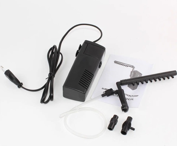 Фильтр оснащен насадкой для соединения с шлангом.Фильтр подходит для аквариума объемом 30 - 60 литров.